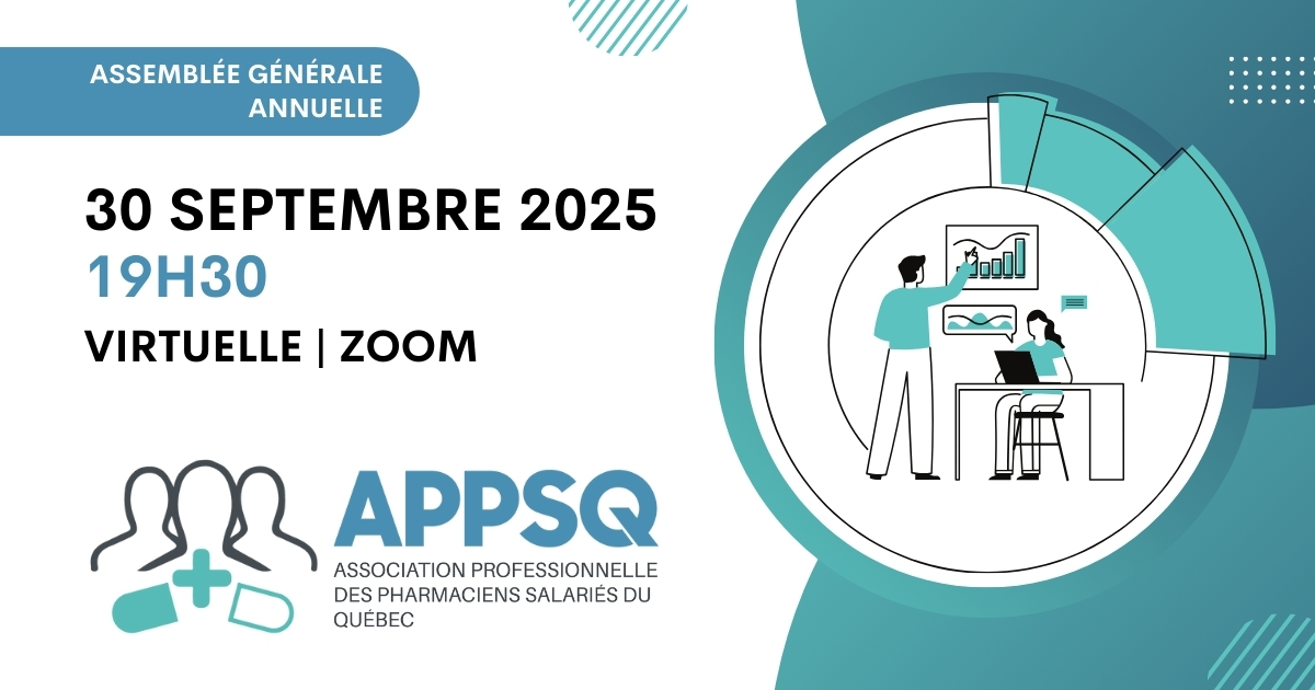 C’est avec plaisir que nous vous convoquons à la 9e Assemblée Générale des membres de l’Association professionnelle des pharmaciens salariés du Québec (APPSQ).